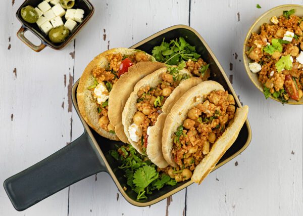 Griekse salade met kikkererwten en Bulgur is bij uitstek een heerlijk zomers gerecht dat zowel als hoofdgerecht als bijgerecht kan worden geserveerd. Een voedzaam en heerlijk gerecht dat eenvoudig en snel te bereiden is. Ideaal als bijgerecht voor grotere gezelschappen tijdens een barbecue of als hoofdgerecht als je vegetariër bent. Ik ga het deze keer bereiden als hoofdgerecht met pitabroodjes.