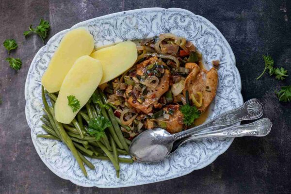 Kippendijen met haricots verts en gekookte aardappelen is een gerecht voor alle seizoenen. Super makkelijk recept voor doordeweekse dagen.