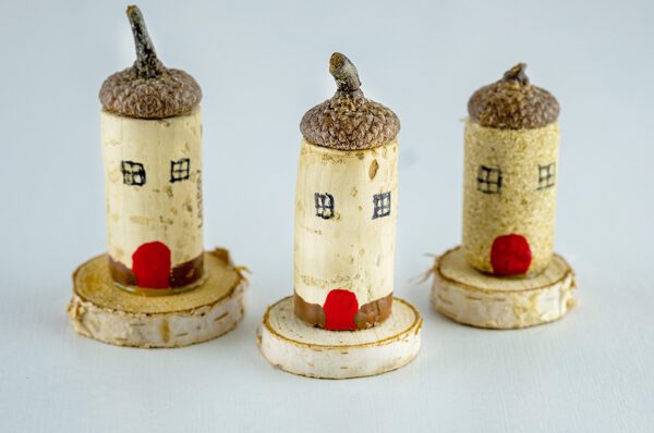 Leuke DIY Kurkhuisjes: Huisjes knutselen van kurk is een schattig DIY om in de Herfst te maken met kinderen. Deze kurkhuisje zijn gemaakt met eikelcape en wijnkurk. Een doe je zelf gemaakt met natuurproducten als basismateriaal.