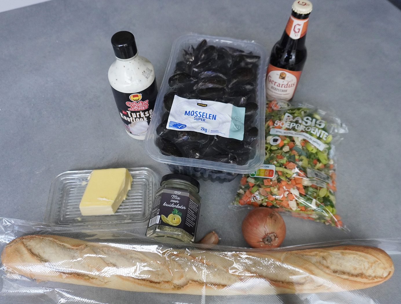 Ingrediënten voor 2 personen: Mosselen bereidt op Tongelrese wijze